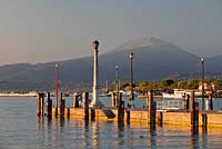 Peschiera, Hafenmole mit Leuchtmast in Abendstimmung
