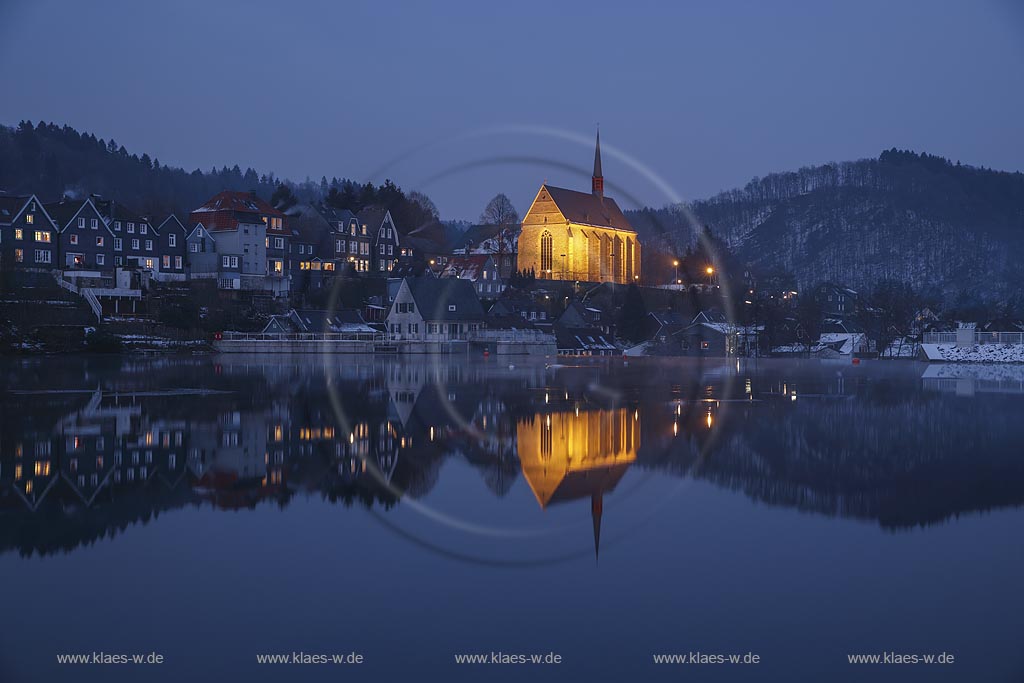 Wuppertal-Beyenburg, Beyenburger Stausee, historischer Ortskern und Klosterkirche St. Maria Magdalena zur blauen Stunde Nordrhein-Westfalen / Bergisches Land Nr. 22794