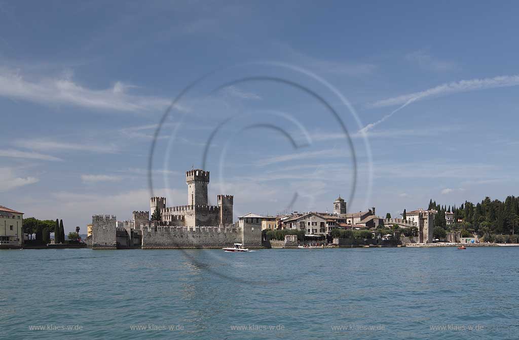 Sirmione, Seeblick zur Scaligerburg Castello Scaligero Südufer des Gardasees - Basso Garda - South coast Lake Garda Lombardei - Lombardia Nr. 20879