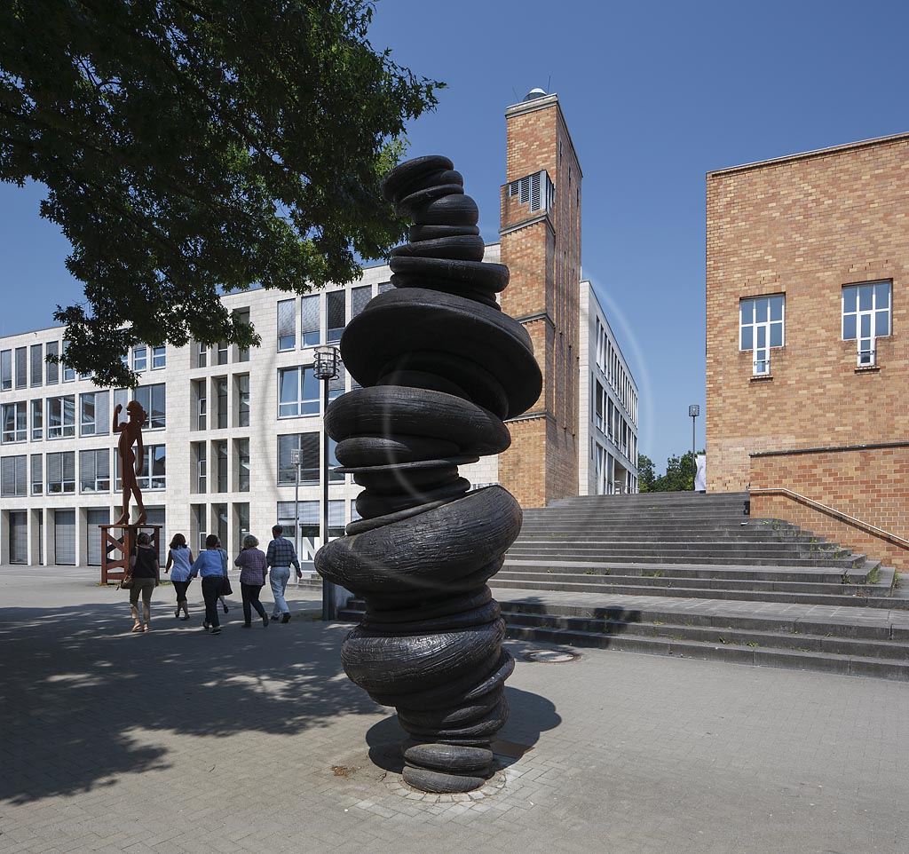 Viersen, Skulpturensammlung Viersen, Skulptur von "Tony Cragg" "Wirbelsäule" auf dem Rathausmarkt vor Stadthaus mit Forum Nordrhein-Westfalen / Niederrhein Nr. 23792a