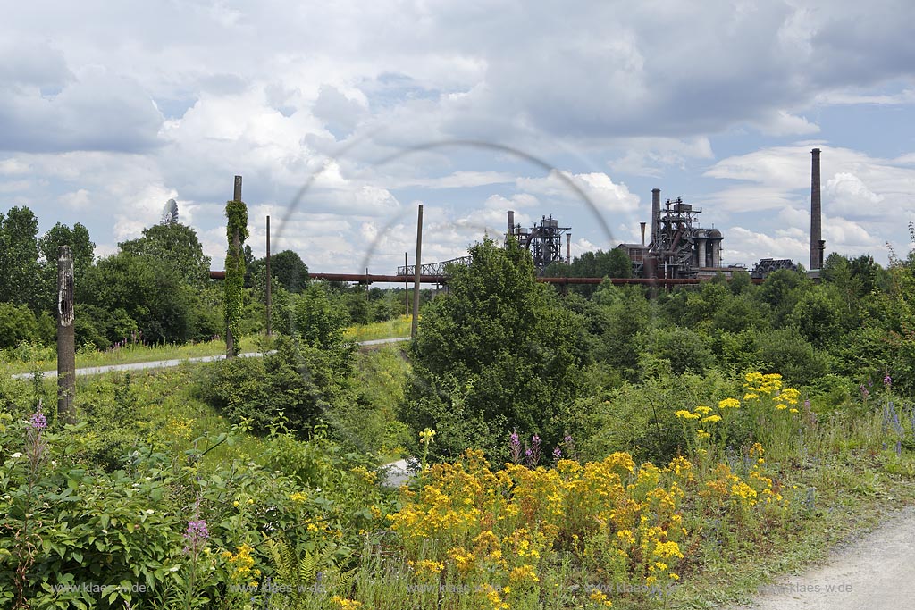 Duisburg-Meiderich, Landschaftspark Duisburg Nord, Blick über blühende Landschaft mit Wildwuchs zum Hochofen Nordrhein-Westfalen / Ruhrgebiet Nr. 22012 |