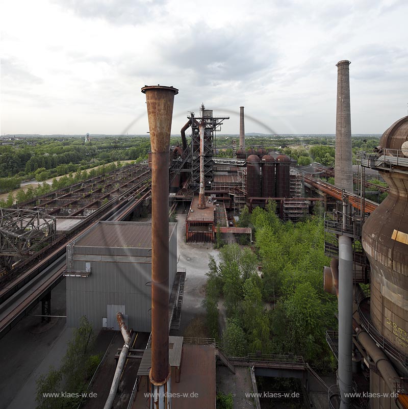 Duisburg-Meiderich, Hochofenwerk von links: Bunkervorplatz, Erzbunker, Sicht auf Hochofen 2 und Cowper Hochofen 2, links im Bild: Sicht auf 2 von 3 Schornsteinen, im Vordergrund von links Nordrhein-Westfalen / Ruhrgebiet Nr. 20305 |
